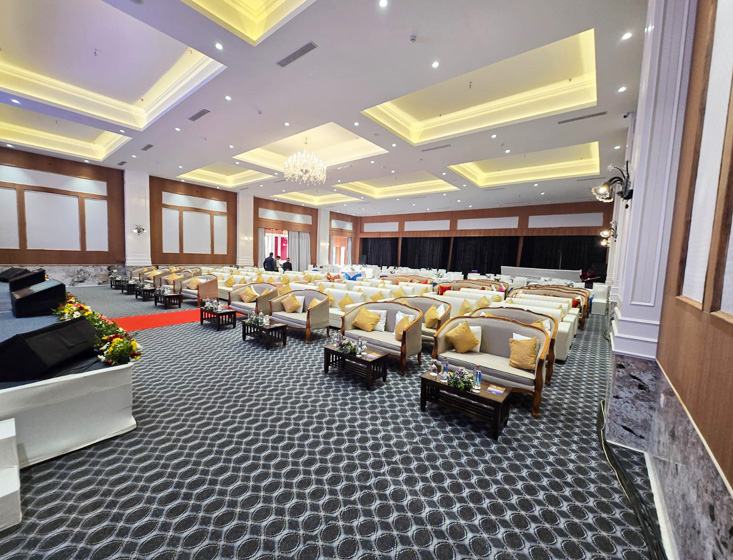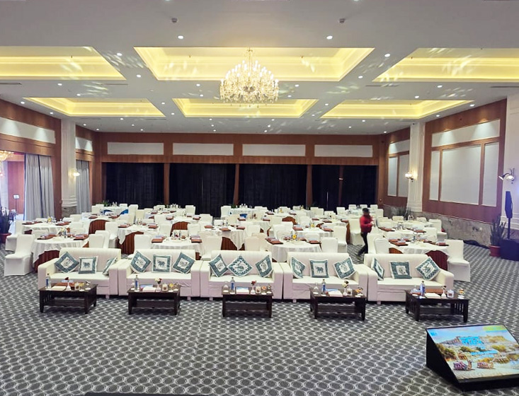 The 'Banquet Hall A' at Rang Mahal, Jaisalmer offers a spacious 4,600 sq. ft. venue designed to host everything from grand weddings and corporate events to stylish social celebrations. With comfortable seating for up to 350 guests, the hall blends timeless Rajasthani aesthetics with modern facilities, advanced lighting, and flexible layouts—creating a refined, versatile space that elevates every event and leaves a lasting impression.