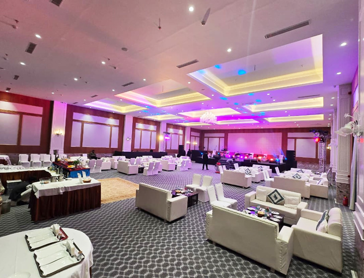 Our elegant banquet hall is designed to host grand weddings, corporate events, and stylish social celebrations. With exceptional cuisine crafted by expert chefs and fully integrated catering services, every event becomes a memorable experience. From wedding receptions and corporate dinners to birthdays and cocktail soirées, our customizable menus and professional planning ensure your occasion is seamless and truly special.